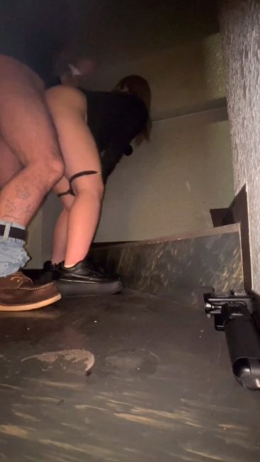 イケそうな感じだったんで、そのままギャルの手を引っ張り、カラオケが入っているビルの非常階段に連れてきました。